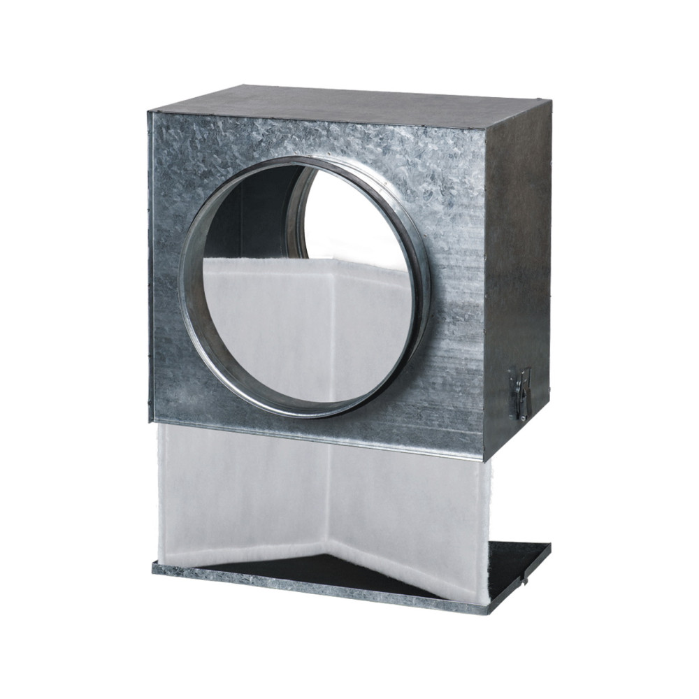 Корпус виготовлений з оцинкованої сталі. Фільтр-бокс оснащений сполучними фланцями з гумовим ущільненням для герметичного з'єднання з повітроводами. Відкидна кришка фільтру обладнана важільними замками для швидкого доступу до змінного фільтруючого елементу. Фільтруючий елемент - з нетканого полотна з синтетичних волокон, фіксується на каркасі із сталевої рамки.