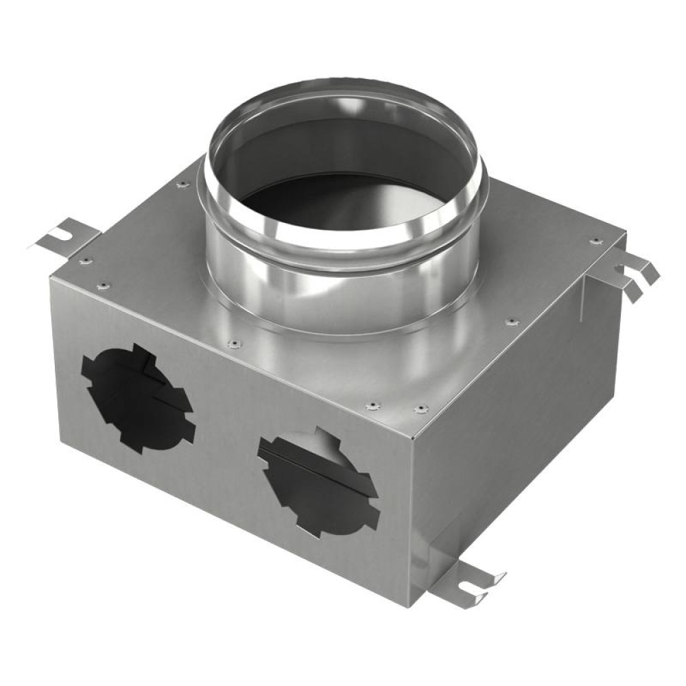 Колектор ФлексіВент 1001125/75х2 використовується для підключення двох повітроводів ∅ 75 мм до виходу від вентилятора або вентиляційної установки ∅ 125 мм.