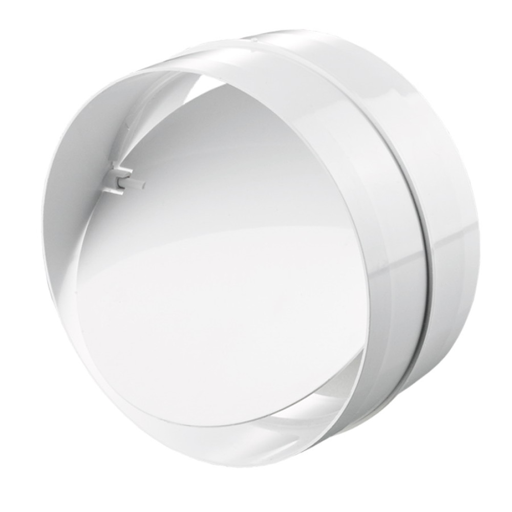 З'єднувач Вентс 2121 із зворотним клапаном для круглих пластикових повітроводів діаметром 125 мм. Сполучає канали між собою, усередині з'єднувача вбудований гравітаційний клапан, який запобігає небажаному напряму руху повітря.