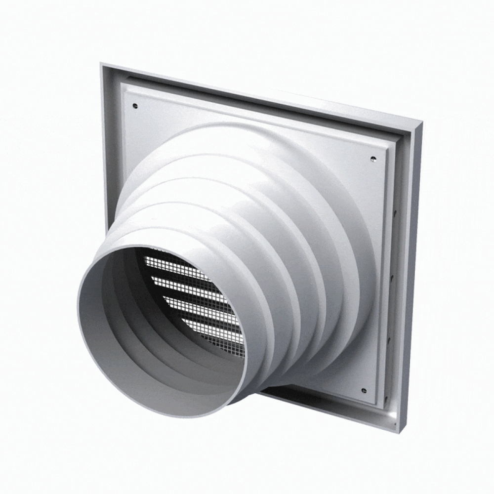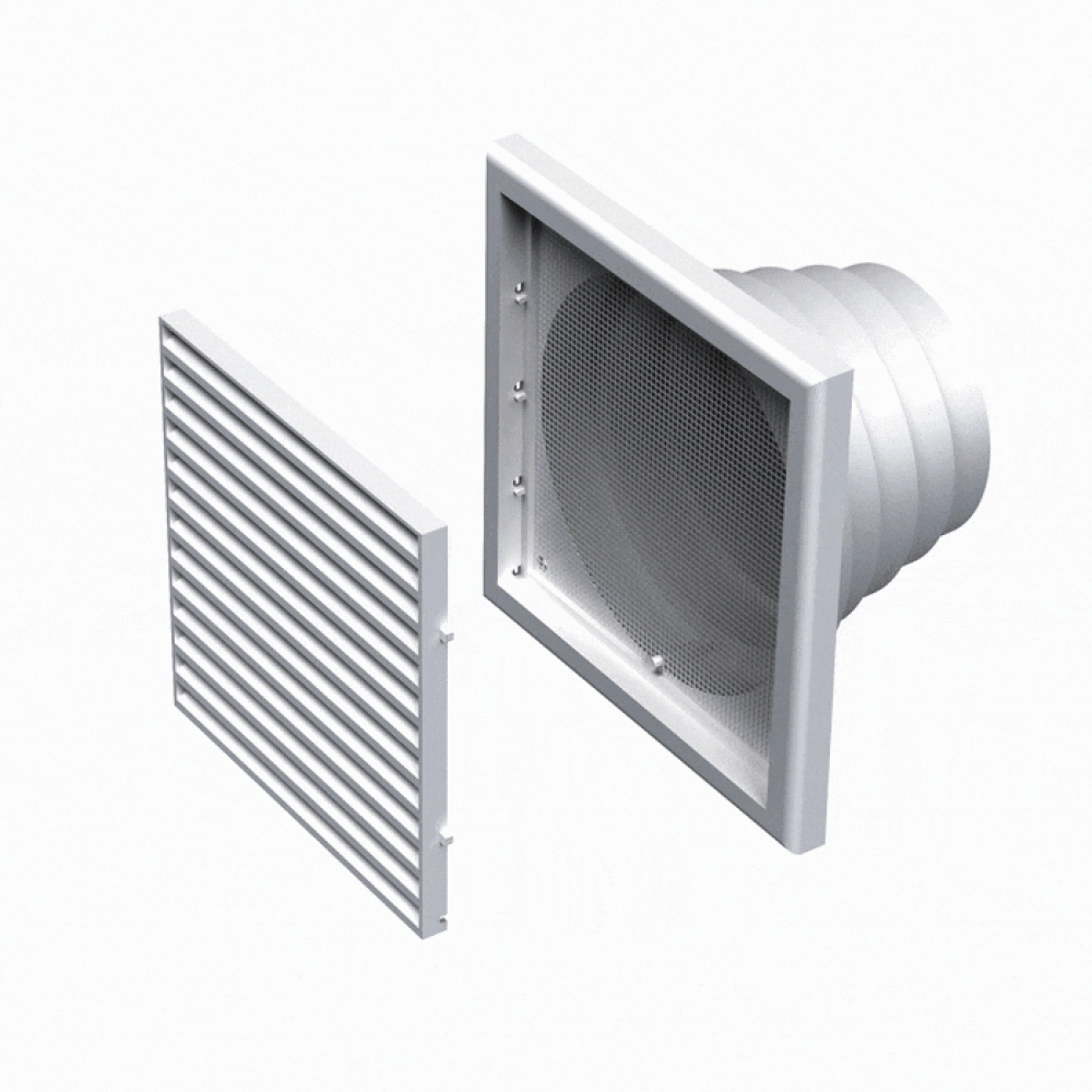 Вентиляційна решітка пластикова Вентс МВ 120 ВНс обладнана універсальним патрубком під повітропровід 100 / 110 / 120 / 130 / 150 мм, сіткою від комах і має похилі жалюзі.