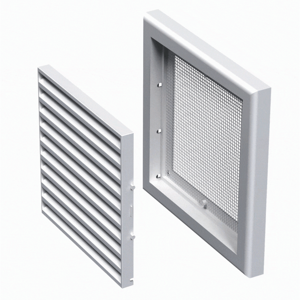 Вентиляційна решітка монтується за допомогою саморізів до стелі або стіни. Внутрішня частина решітки кріпиться за допомогою клямок.