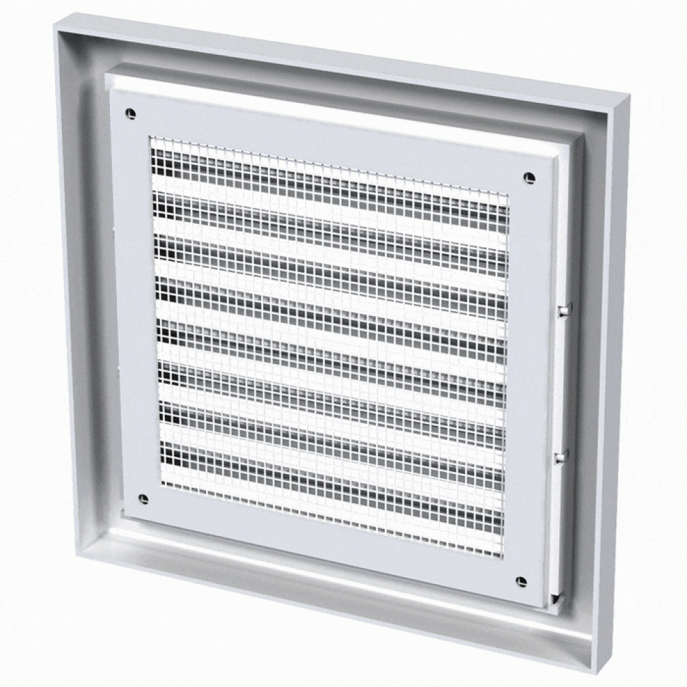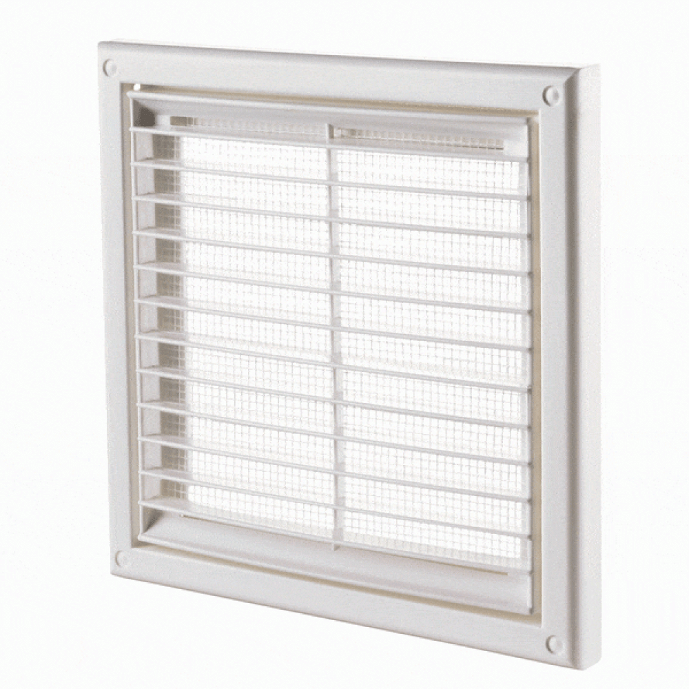 Решітки вентиляційні пластикова Вентс МВ 121 з обладнана сіткою від комах і має прямі жалюзі.