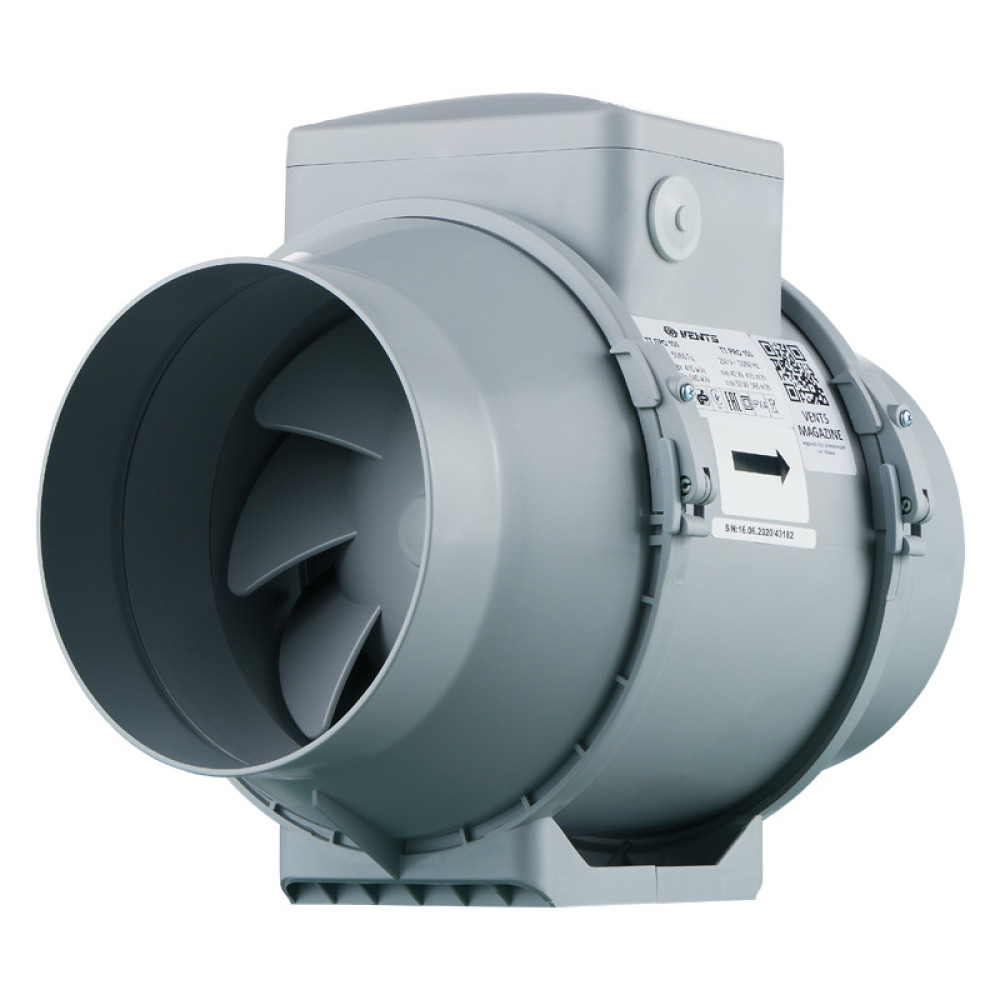 Канальний вентилятор Вентс ТТ ПРО 150 використовується для припливної або витяжної вентиляції приміщень різного призначення. Встановлюється в закритих приміщеннях, здатний переміщати повітря з максимальною продуктивністю 565 м3/год і температурою до +60°С. Корпус виготовлений з пластика зниженої горючості. Оснащений двошвидкісним однофазним електродвигуном. При необхідності продуктивність можна регулювати ступінчасто або плавно. З'єднуються з повітропроводами або іншими елементами вентиляції з діаметром 150 мм.