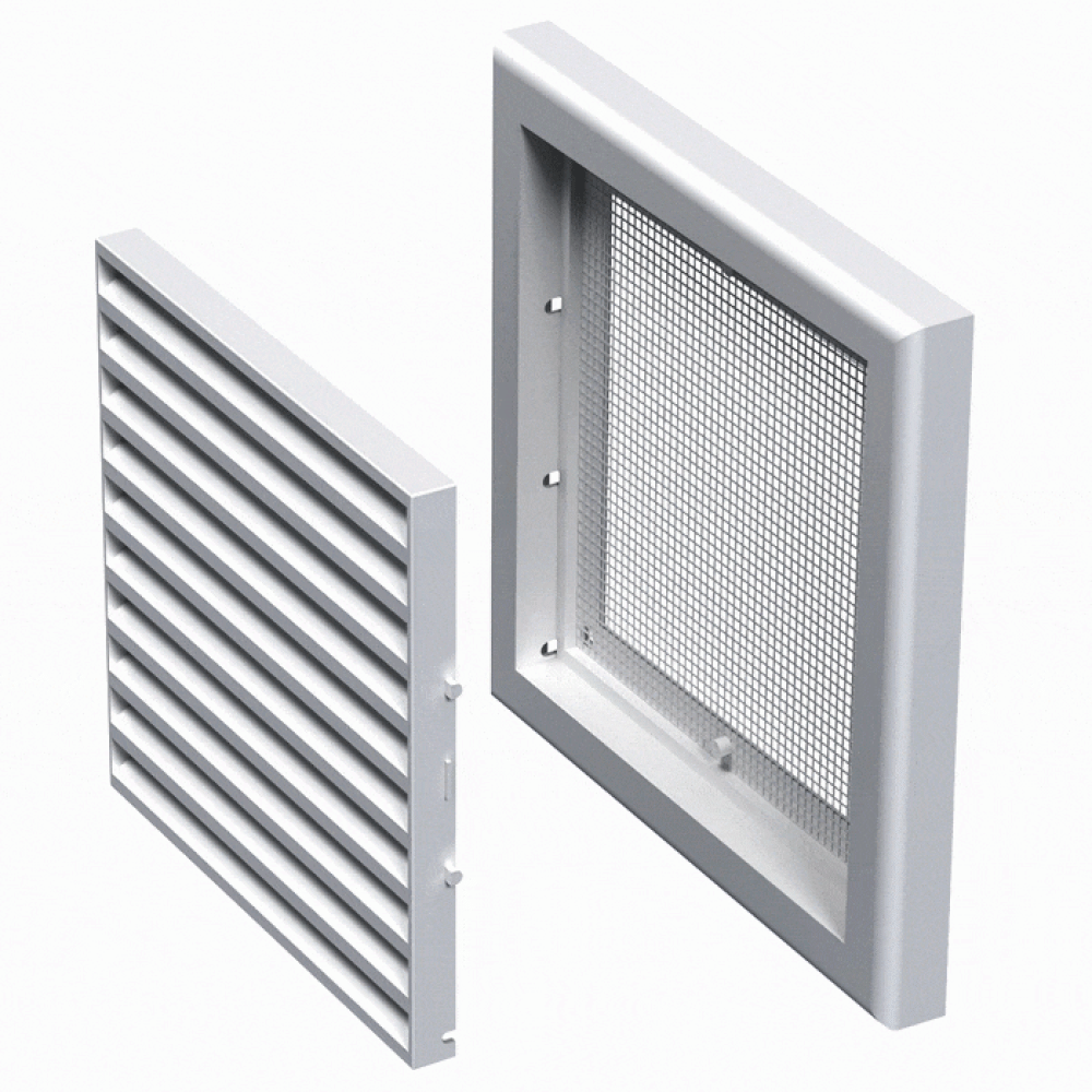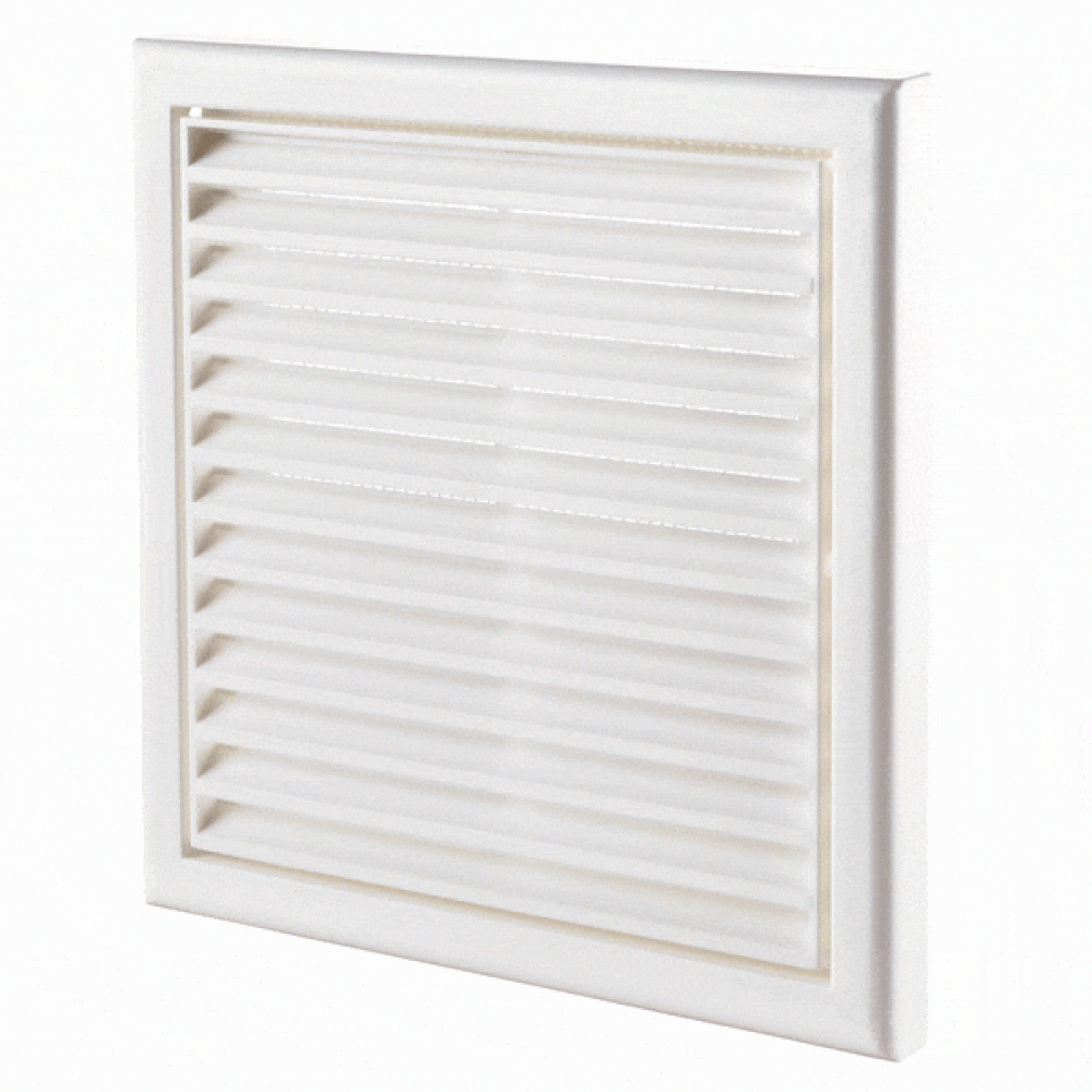Вентиляційна решітка пластикова Вентс МВ 120 з обладнана сіткою від комах і має похилі жалюзі.