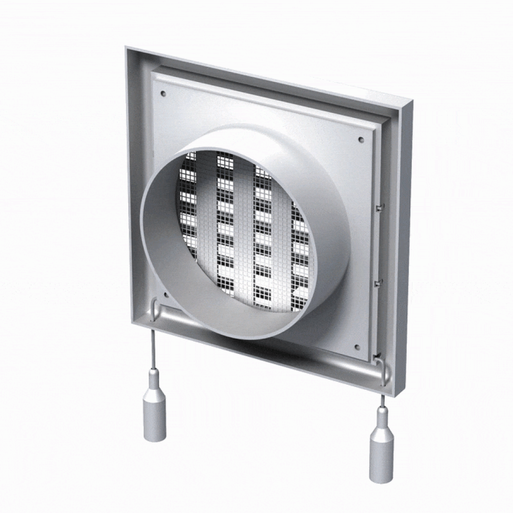 Монтується за допомогою саморізів до стелі або стіни. Внутрішня частина решітки кріпиться за допомогою клямок.