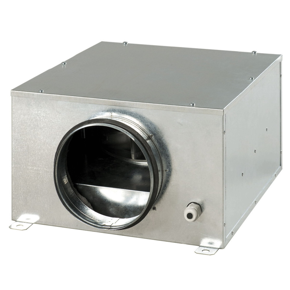 Вентилятор Вентс КСБ 150 в шумоізольованому корпусі з максимальною продуктивністю 420 м3/год. Призначений для роботи у складі припливної або витяжної вентиляції приміщень. Вентилятор може монтуватися в закритих приміщеннях, діаметр під'єднування з повітроводами 150 мм.