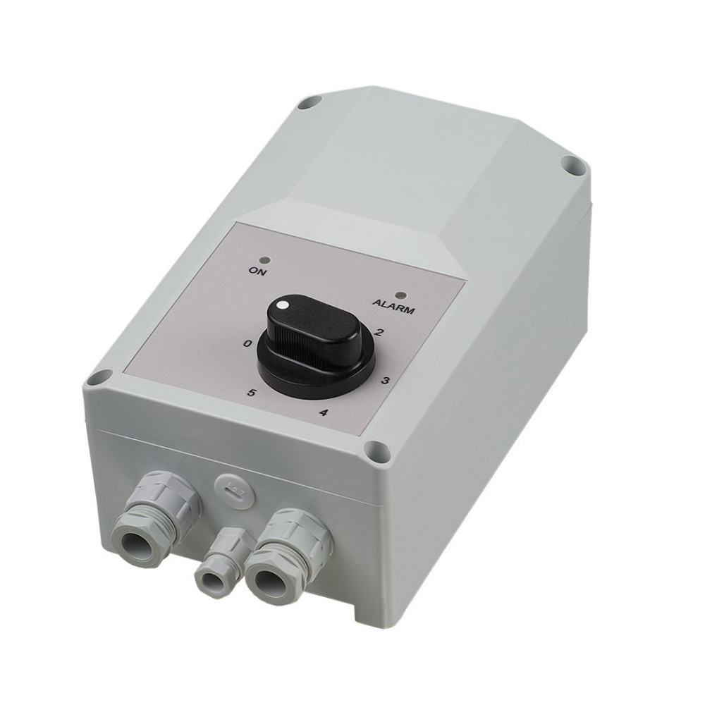 Корпус регулятора виготовлений з негорючого термопластика. Регулятор має п'ять швидкостей з вихідним напрузі 90В - 150В - 200В - 280В - 400В. Регулятор обладнаний ручкою перемикання швидкостей лампою індикації роботи і сигнальною лампою, що показує аварійну роботу регулятора. Регулятор має вбудоване облаштування захисту електродвигуна, яке припиняє подання електрики при спрацьовуванні термоконтакта в електродвигуні вентилятора. Повторне включення відбувається після повернення температури двигуна до робочих значень. В якості додаткових функцій регулятор має клеми(230 В, макс. 2А) для підключення і управління зовнішнім устаткуванням (наприклад, приводами повітряних заслінок).