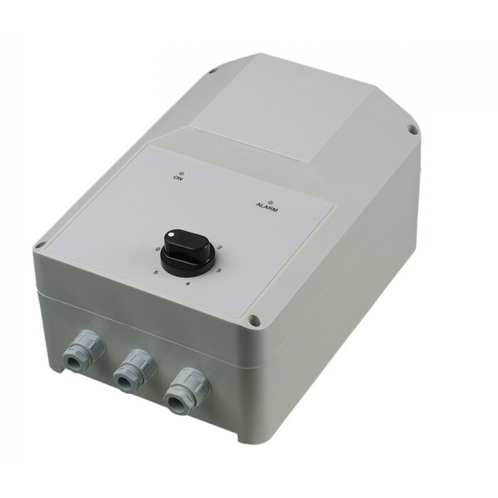 Корпус виготовлений із негорючого термопластику. Регулятор має п'ять швидкостей з вихідною напругою 80 В - 105 В - 130 В - 160 В - 230 В.