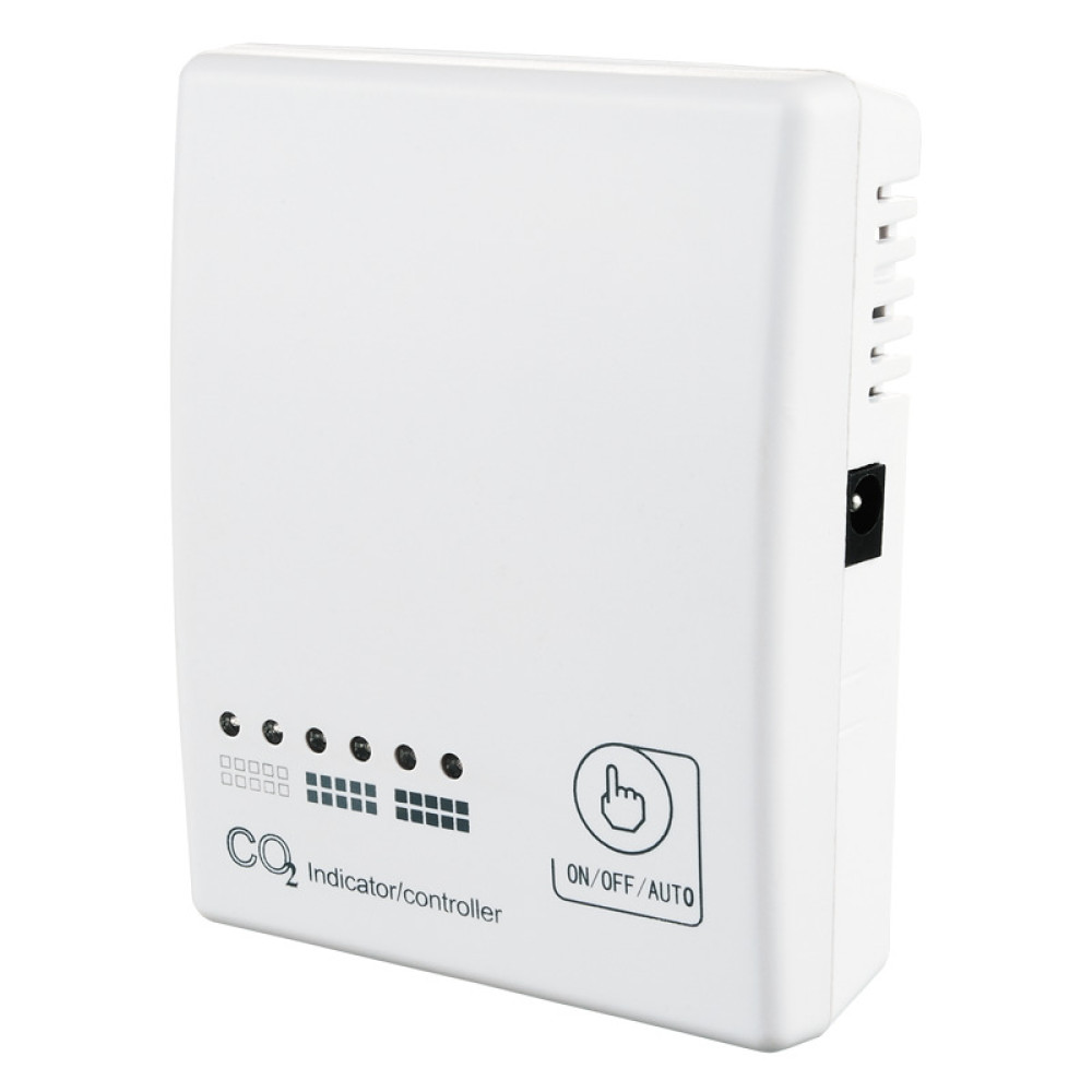 Ця модель СО2-1 обладнана діодами світловими індикаторами рівня вуглекислого газу і кнопкою перемикання режимів роботи. За допомогою кнопки можна вручну включити або вимкнути вентиляцію, коли робота по датчику не потрібна.