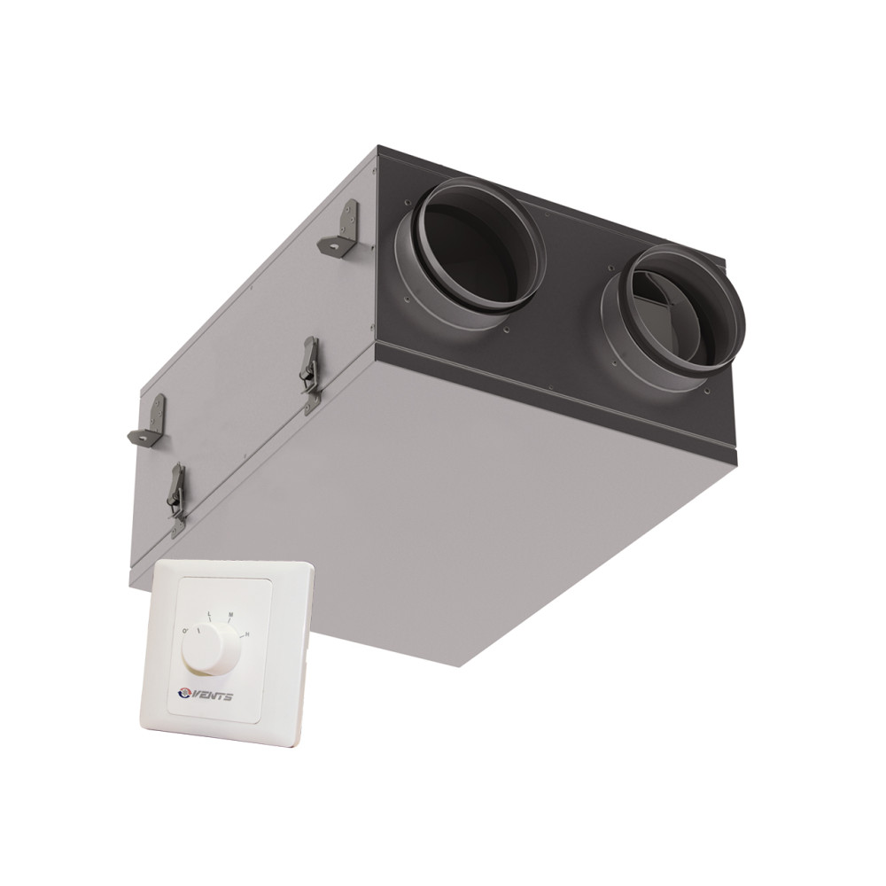 Вентиляційна установка є повністю готовим моноблочним пристроєм. У агрегаті виконується фільтрація, постачання свіжого повітря, підігрів його при необхідності, видалення відпрацьованого повітря. Пластинчатий рекуператор з великою ефективністю забезпечує підігрівання свіжого повітря з вулиці перед постачанням його в приміщення в холодний період року. При цьому в установці немає окремого електричного нагрівача, що дозволяє істотно економити на експлуатаційних витратах. Споживання установки в діапазоні 30 - 56 Вт залежно від швидкості вентилятора.