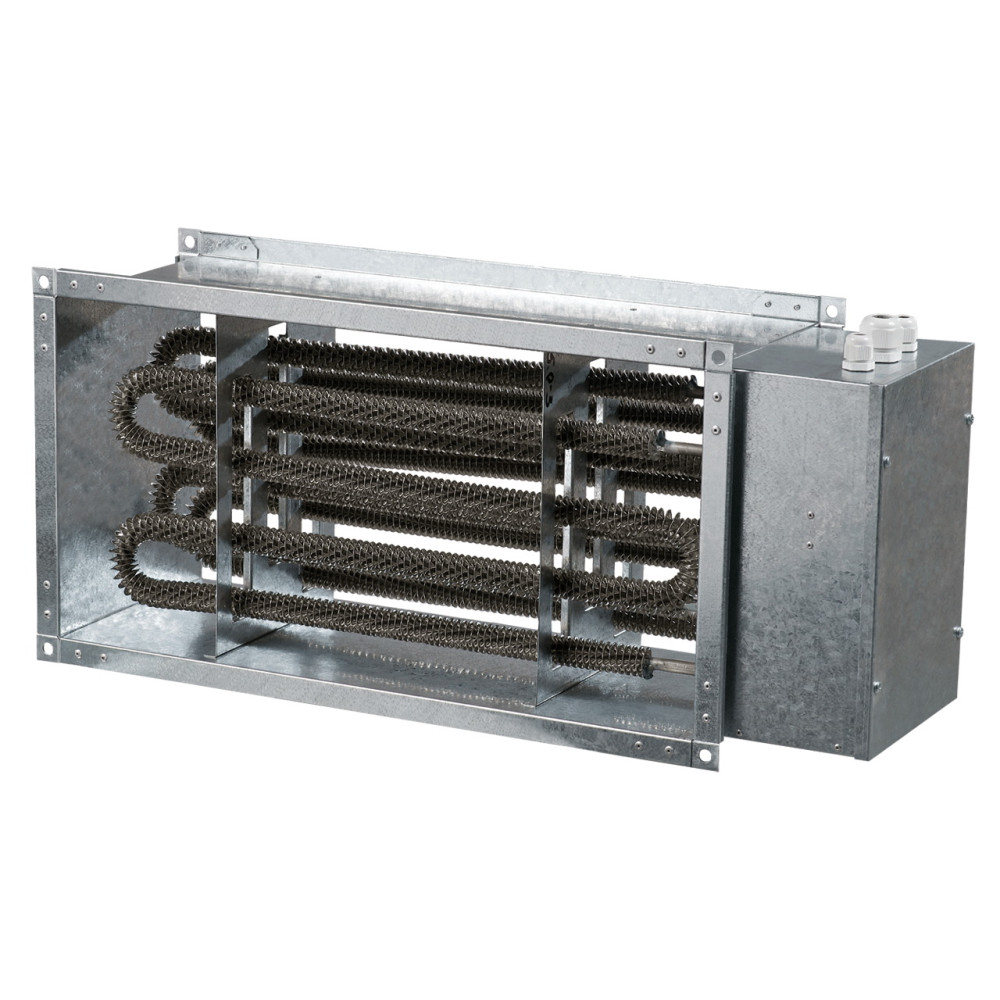 Електричний нагрівач Вентс НК 500х250-21,0-3 складається з корпусу, комутаційної коробки і нагрівальних елементів з нержавіючої сталі, забезпечених додатковим обребренням для збільшення площі теплообміну. Канальні нагрівачі НК обладнані двома термостатами захисту від перегрівання: